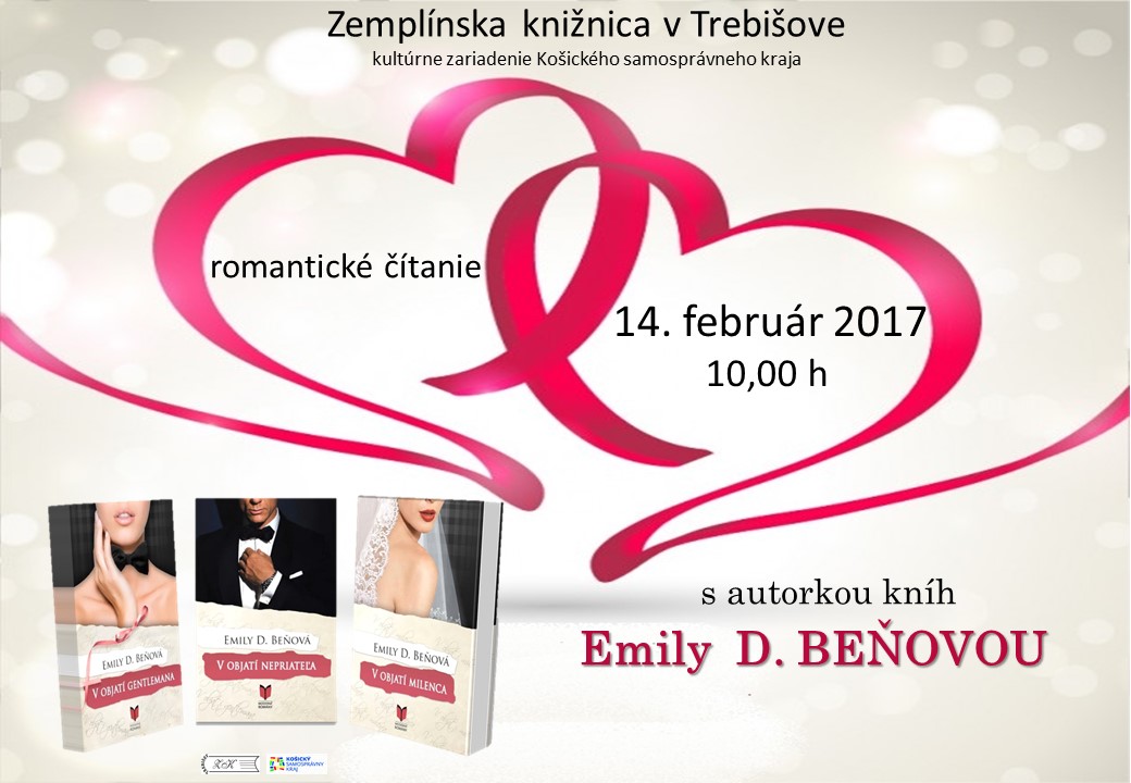 a okrem toho Vás pozývame na stretnutie s autorkou Emily D. Beňovou a jej romantickými knihami, z ktorých príbehy bude čítať iba pre Vás o 10,00 h. v knižnici.