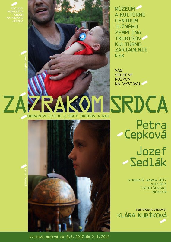Múzeum a Kultúrne centrum južného Zemplína v Trebišove sprístupňuje v priestoroch kaštieľa stredu 8. marca 2017 o 17.00 hod. výstavu dokumentárnych fotografií pod názvom ZÁ/ZRAKOM SRDCA Autormi výstavy sú Petra Cepková a Jozef Sedlák.