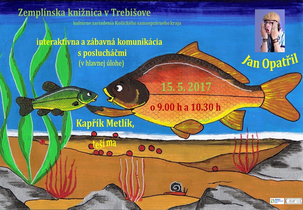 Zemplínska knižnica v Trebišove organizuje 15. mája 2017 o 9,00 h a 10,30 h pre deti základných škôl interaktívnu a zábavnú komunikáciu spisovateľa Jana Opatřila s detským poslucháčom a jeho autorské čítanie kníh.