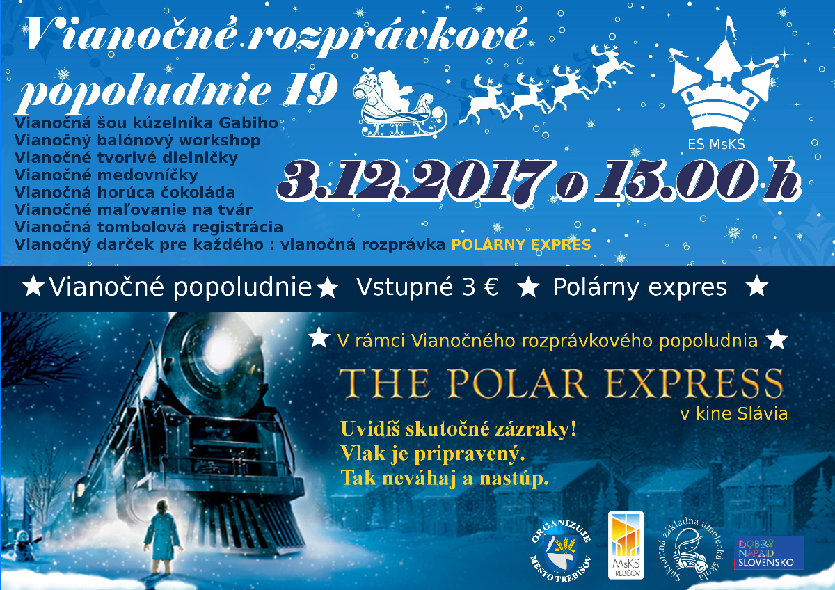 Deti získajú pekný zážitok z mnohých aktivít a šou, ktorú im pripraví kúzelník Gabi. V rámci tohto popoludnia Kino Slávia Trebišov premietne rozprávku Polárny expres.