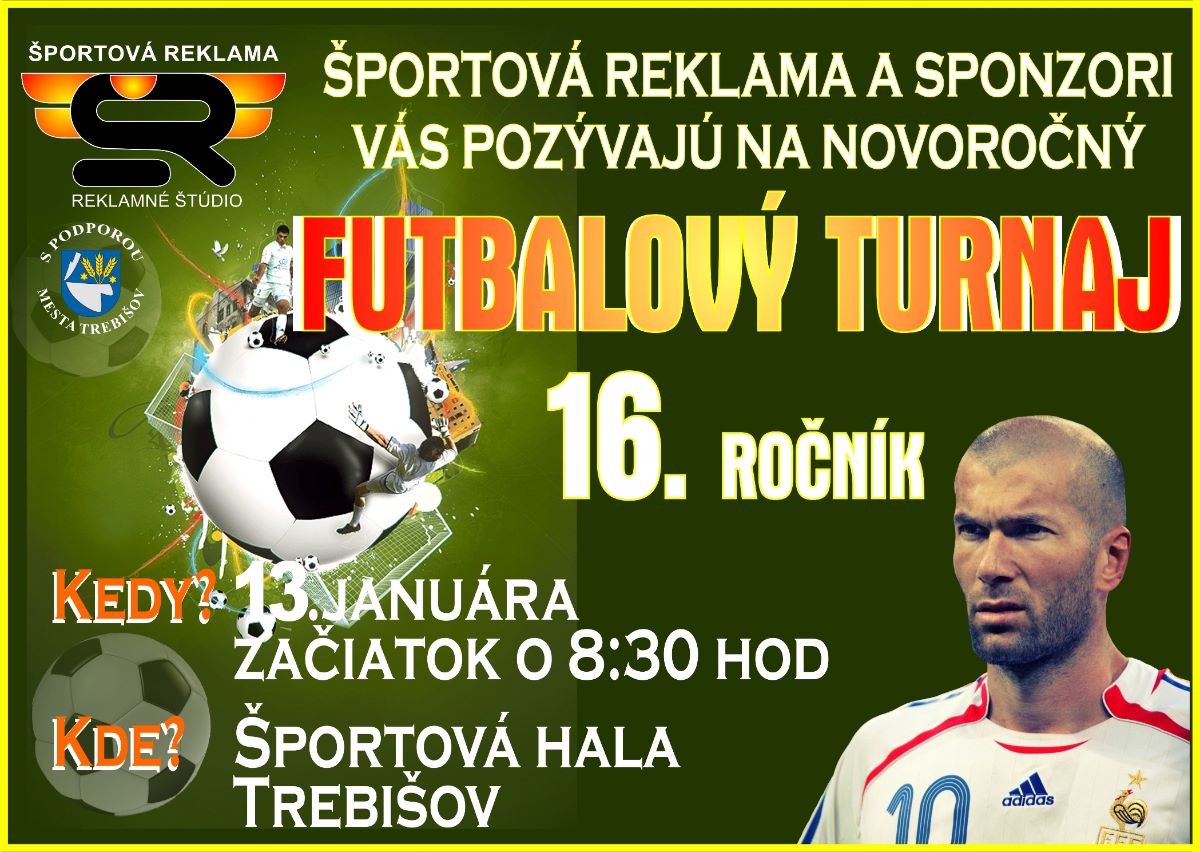 Najväčší halový futbalový turnaj v okrese Trebišov sa uskutoční druhý januárový víkend. Organizátorom tohto športového podujatia je Radoslav Fižiar, ktorý pripravil jeho 16. ročník. Futbalový turnaj sa uskutoční s podporou mesta Trebišov sobotu 13. januára 2018 so začiatkom o 8,30 hod. v Športovej hale v Trebišove.