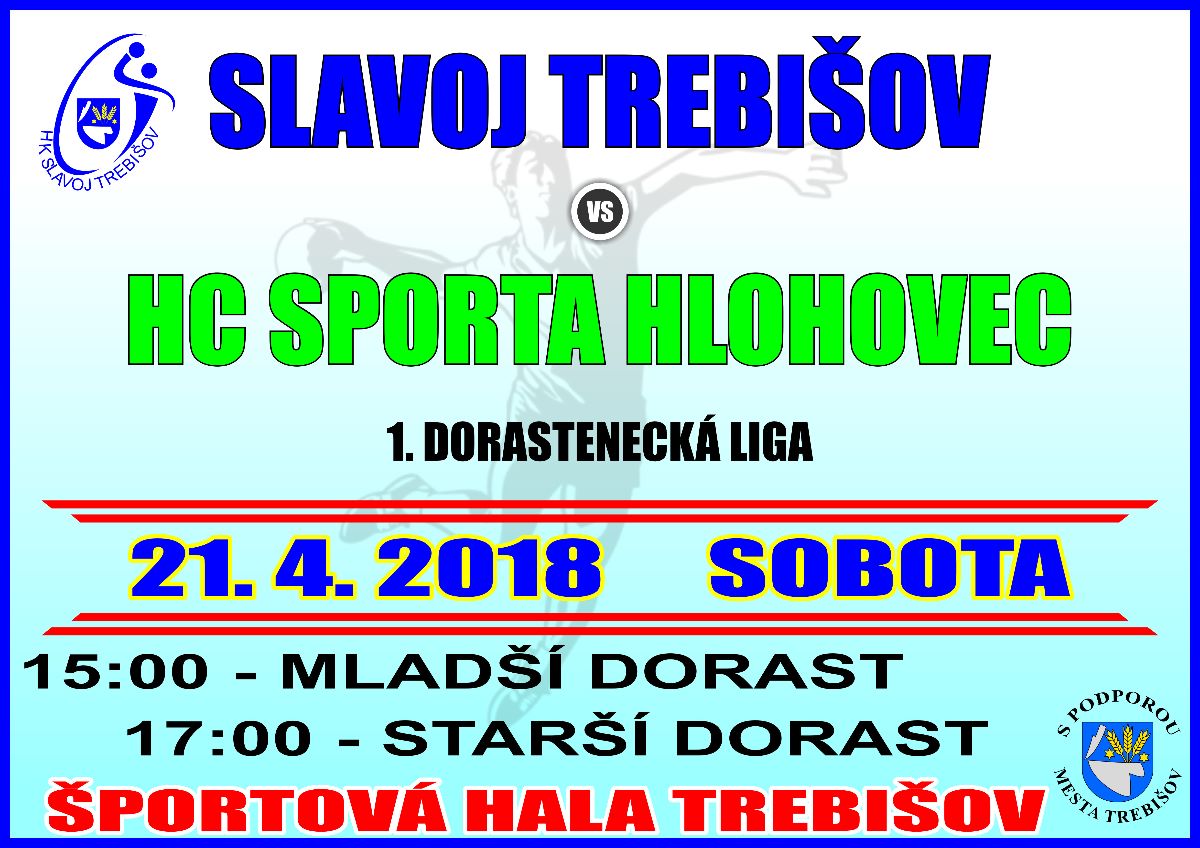 Mesto Trebišov a HK Slavoj Trebišov pripravujú ďalšie hádzanárske zápasy 1. dorasteneckej ligy, ktoré sa budú konať sobotu 21. apríla 2018 v Športovej hale v Trebišove.