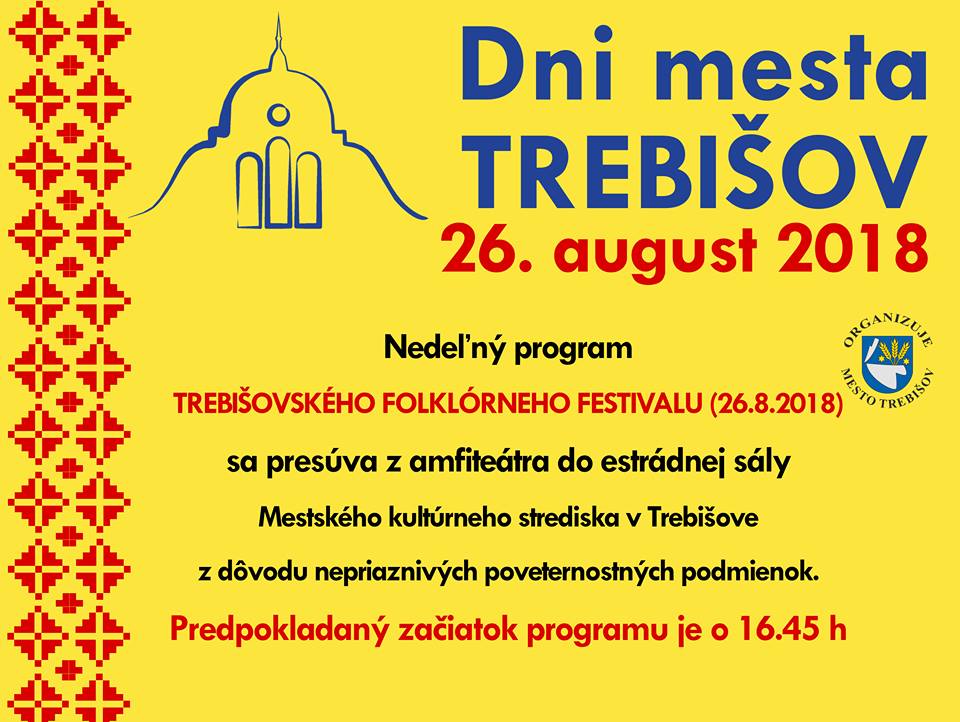 ZMENA ČASU A MIESTA PROGRAMU TREBIŠOVSKÉHO FOLKLÓRNEHO FESTIVALU