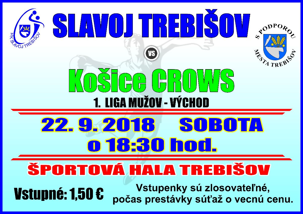 Mesto Trebišov a HK Slavoj Trebišov organizujú hádzanársky zápas 1. ligy mužov - VÝCHOD, ktorý sa uskutoční sobotu 22. septembra 2018 v Športovej hale v Trebišove.