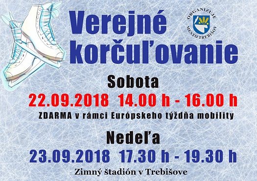 V rámci Európskeho týždňa mobility 2018 mesto Trebišov umožní sobotu 22.9. širokej verejnosti korčuľovanie ZDARMA.