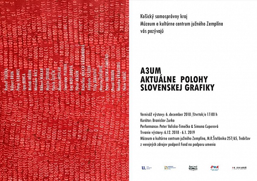 OZ Koniareň a Múzeum a Kultúrne centrum južného Zemplína, kultúrne zariadenie KSK, slávnostne otvoria štvrtok 6.12. o 17.00 h výstavu A3UM - Aktuálne polohy slovenskej grafiky.