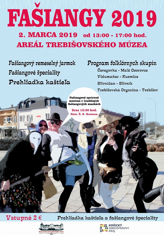 Nielen utorok 5. marec, ale aj sobota 2. marca 2019 bude v Trebišove patriť tradičným fašiangom. Podujatie počas víkendu pripravuje kultúrne zariadenie Košického samosprávneho kraja Múzeum a Kultúrne centrum južného Zemplína v Trebišove. Do fašiangového sprievodu pozýva všetkých občanom mesta jeho riaditeľka Beáta Kereštanová a zároveň uvádza, že by bolo dobré, ak by sa organizátorovi podujatia podarilo obnoviť pamäť ľudu regiónu práve zachovaním tradičných masiek, ktoré tvorili súčasť niekdajších pochôdzkových sprievodov.