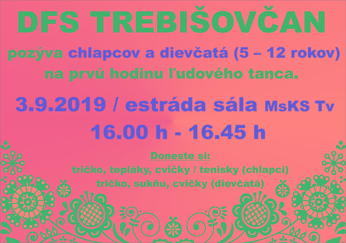 pozýva deti vo veku od 5 do 12 rokov na 1. hodinu ľudového tanca