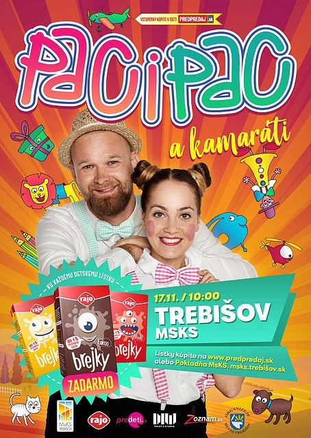 Paci Pac a kamaráti je názov jesenného turné obľúbenej dvojice Paci a Pac, ktorí prichádzajú s úplne novou show, plnou chytľavých pesničiek, veselých postavičiek a krásnych kulís. S Pánom Trampolínim si zaskáčete na trampolíne, Levík Leo vás naučí, že nie každý lev musí byť len mäsožravý a vysvetlené bude aj to, prečo je mliečko pre deti také zdravé! Samozrejme, sa všetci návštevníci môžu tešiť aj na už klasické youtubové hity ako Slon, Ťapy Ťap, Darček, či Čarbičky. Hovorí Mário Praženec, známy ako PAC: špeciálnu pozornosť dvojica venovala tomu, aby ich program čo najviac vyšperkovali. Predstavia novinky a tešia sa na všetky deti.