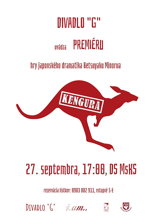 Ochotníci z Divadla G pripravujú premiéru svojej najnovšej inscenácie hry s názvom KENGURA, ktorá sa uskutoční nedeľu 27. 9. o 17:00 v divadelnej sále MsKS v Trebišove