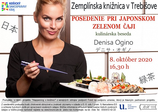„Na japonskú stravu sa dobre a rýchlo zvyká“- hovorí pôvabná a sympatická Denisa Ogino, autorka populárnych knižiek „Navarme si Japonsko“ a „Sushi v dushi“, ktorá na stretnutí v Zemplínskej knižnici v Trebišove, 8. októbra 2020 o 16:30 h. porozpráva o exotickom Japonsku, tamojšej kultúre a netradičnom spôsobe života, ktorý sama zažila a spoznávala 10 rokov, keďže bola vydatá za Japonca.