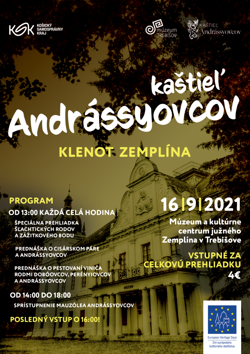 Múzeum a Kultúrne centrum južného Zemplína v Trebišove, kultúrne zariadenie Košického samosprávneho kraja, organizuje v rámci Dní európskeho kultúrneho dedičstva (DEKD) 2021 podujatie Kaštieľ Andrássyovcov – Klenot Zemplína.