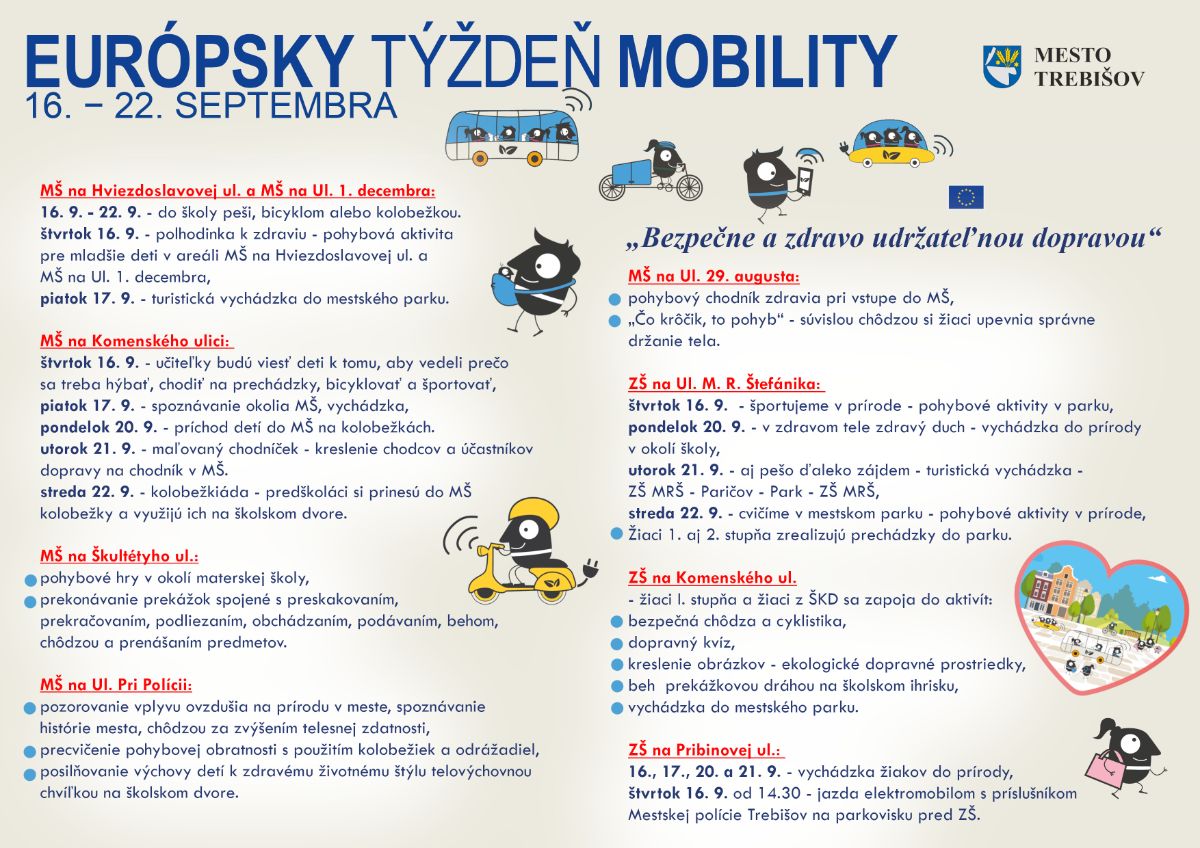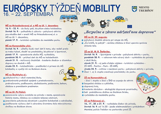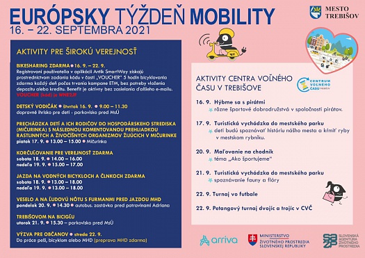 Samospráva mesta Trebišov sa už dlhšie obdobie snaží rozvíjať udržateľnú ekologickú dopravnú mobilitu. Túto myšlienku ešte viac podporí aktivitami, ktoré pripravila pre širokú verejnosť aj pre návštevníkov CVČ v Trebišove v období trvania tohtoročnej kampane 16. 9 – 22. 9.