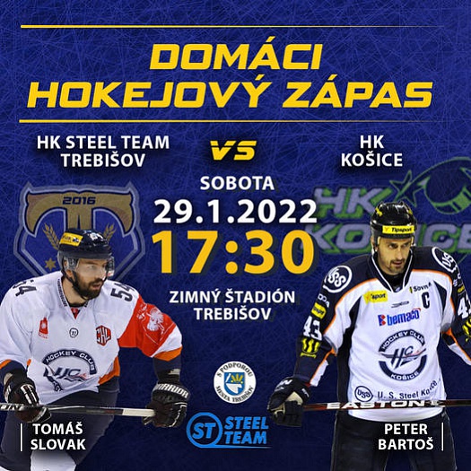 Na ľadovej loche zimného štadióna v Trebišove sa sobotu 29. januára 2022 o 17:30 h odohrá, po dlhšej pauze, domáci hokejový zápas mužstva HK STEEL TEAM TREBIŠOV s tímom HK KOŠICE.