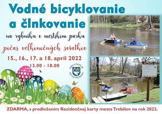 Vo sviatočné dni si môžu všetci návštevníci mestského parku vychutnať po prvýkrát v tomto roku oddychovú jazdu na člnkoch a vodných bicykloch. Mesto začne s prevádzkovaním obľúbených rekreačných športov už na Veľký piatok 15. 4. v čase od 13.00 do 18.00.