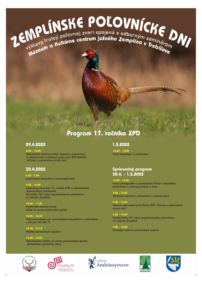 Počas dní 29. apríla - 1.mája 2022 sa uskutoční 17. ročník Zemplínskych poľovníckych dní v areáli Múzea a Kultúrneho centra južného Zemplína v Trebišove.