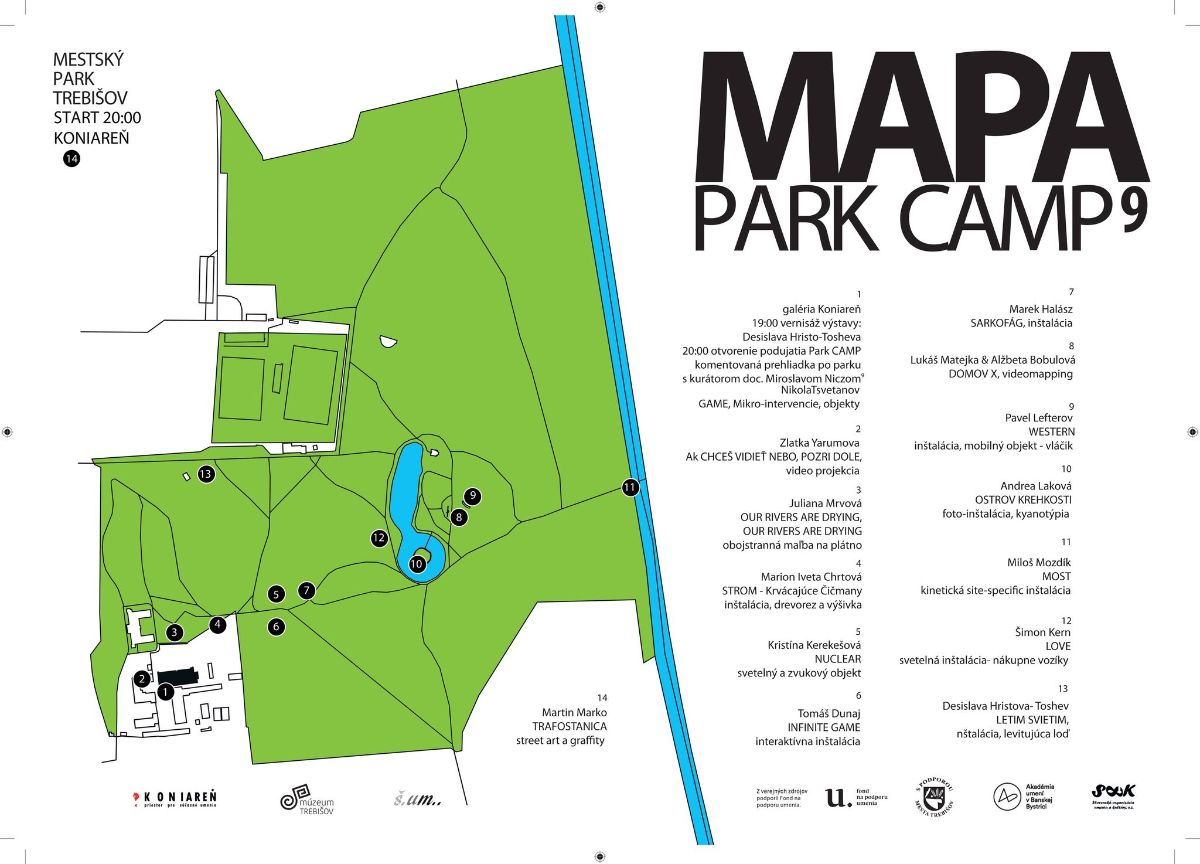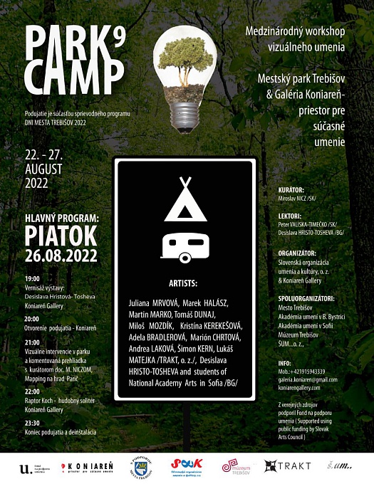 20:00 Otvorenie výstavy PARK CAMP 9 a komentovaná prehliadka po parku s kurátorom Miroslavom Niczom
