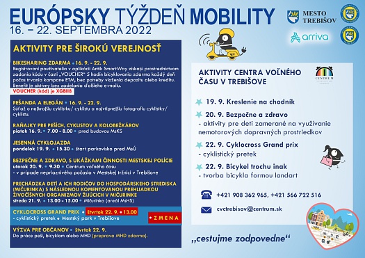 Aktivita mesta a centra voľného času v Trebišove v rámci EURÓPSKEHO TÝŽDŇA MOBILITY 2022