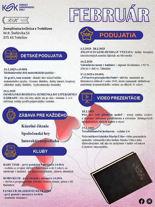 Program februárových podujatí v Zemplínskej knižnici v Trebišove.