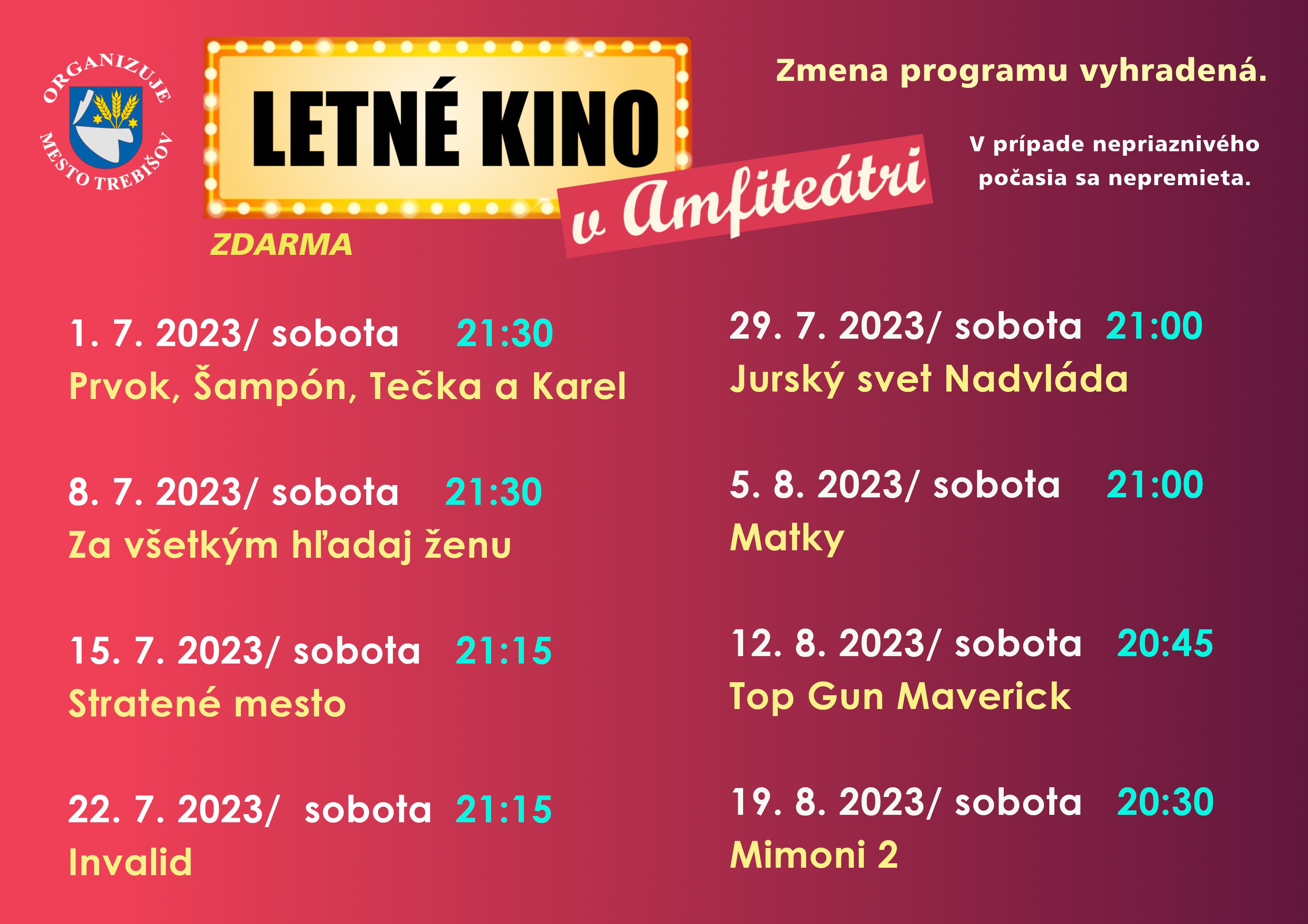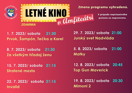 Sobotu 1. júla 2023 spúšťame Letné kino v amfiteátri