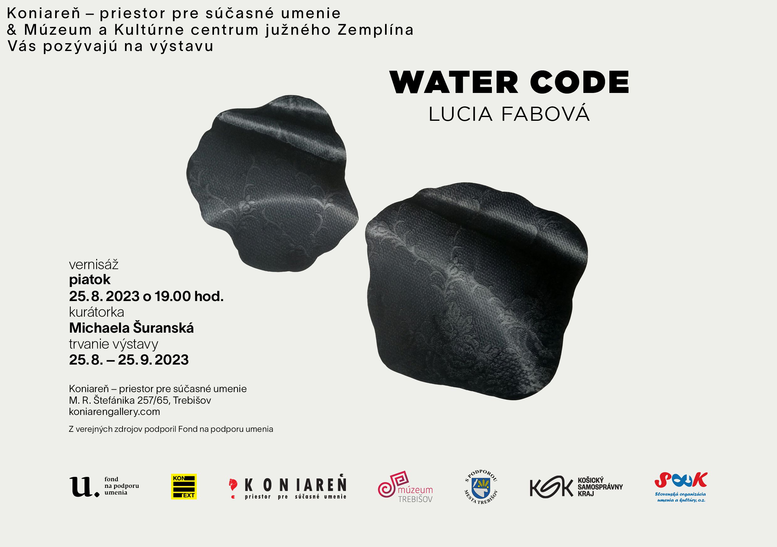 V Koniarni vám počas DNÍ MESTA TREBIŠOV 2023 ponúkame aj experimentálny maliarsky kumšt v podobe výstavy obrazov autorky Lucie Fabovej s názvom „ Water code“ (Kód vody). Vystavujeme piatok 25. augusta o 19.00 v areáli kaštieľa.