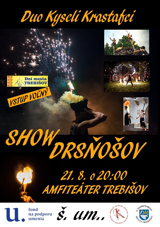 Najdrsnejšia show pre deti - show drsňošov je určená pre dedti a nielen pre ne. Nový cirkus, akrobacia a hra s ohňom. Komediálne interaktívne podujatie na veľmi tenkej hranici medzi niečím prudko stupídnym a vysoko sofistikovaným. Plytké myšlienky a hlboký humor, plytký humor a hlboké myšlienky.