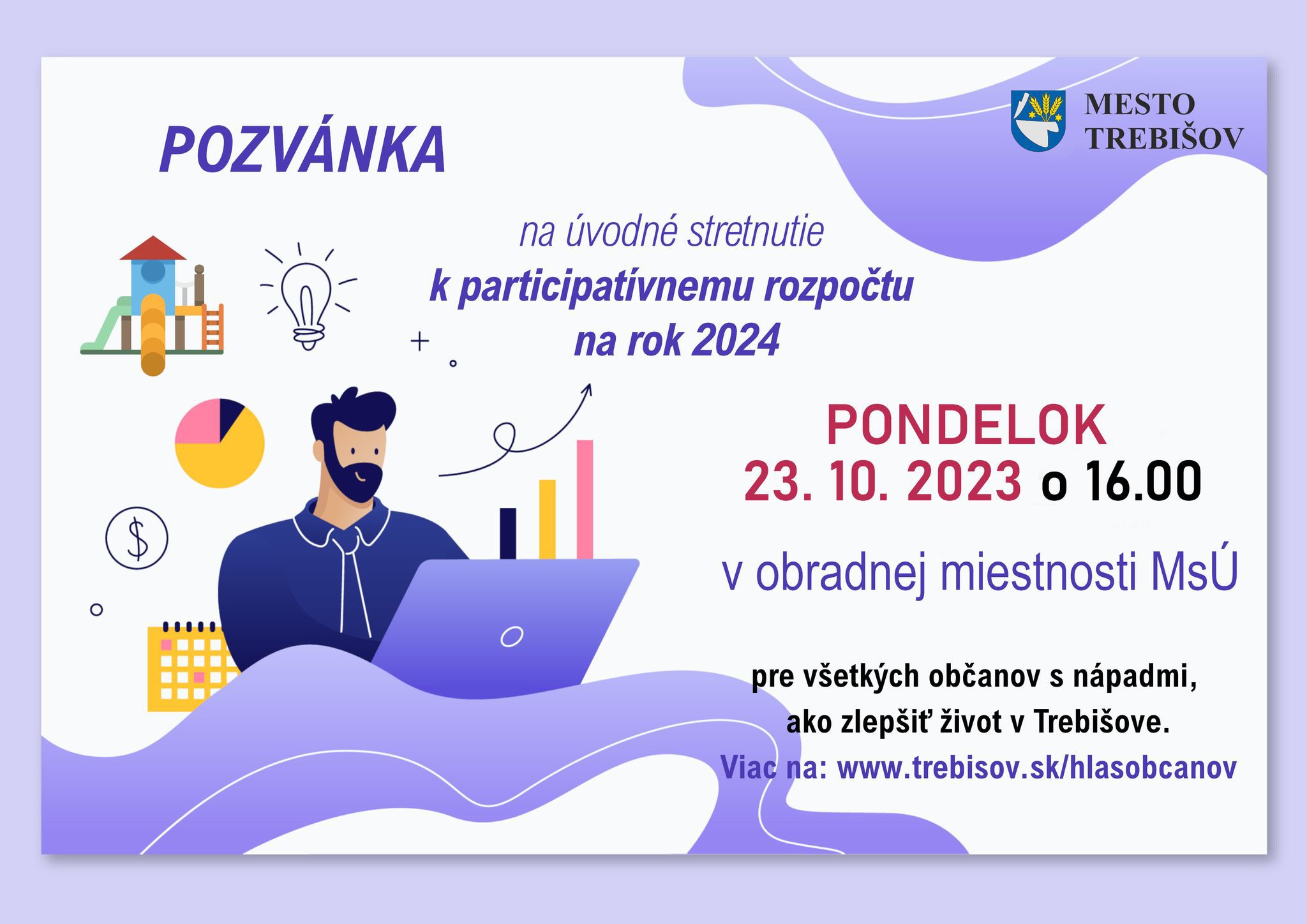 pozývame Vás na 1. verejné stretnutie k participatívnemu rozpočtu na rok 2024, ktoré sa uskutoční