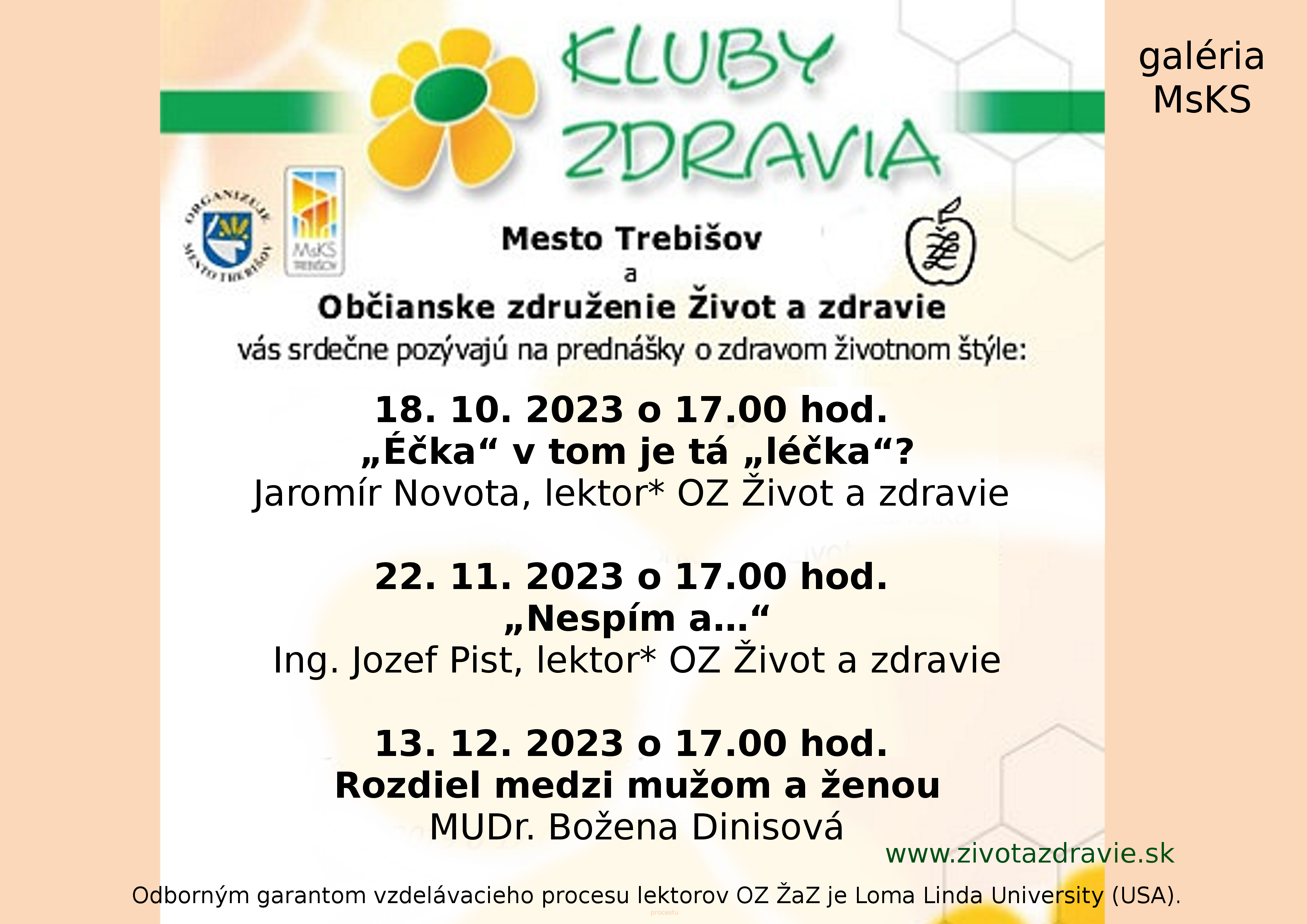 Občianske združenie Život a zdravie prichádza na jeseň a zimu 2023 s novými cyklami Klubov zdravia – prednáškami, ktorými dávajú do pozornosti zdravý životný štýl tak potrebný v dnešnej hektickej dobe.