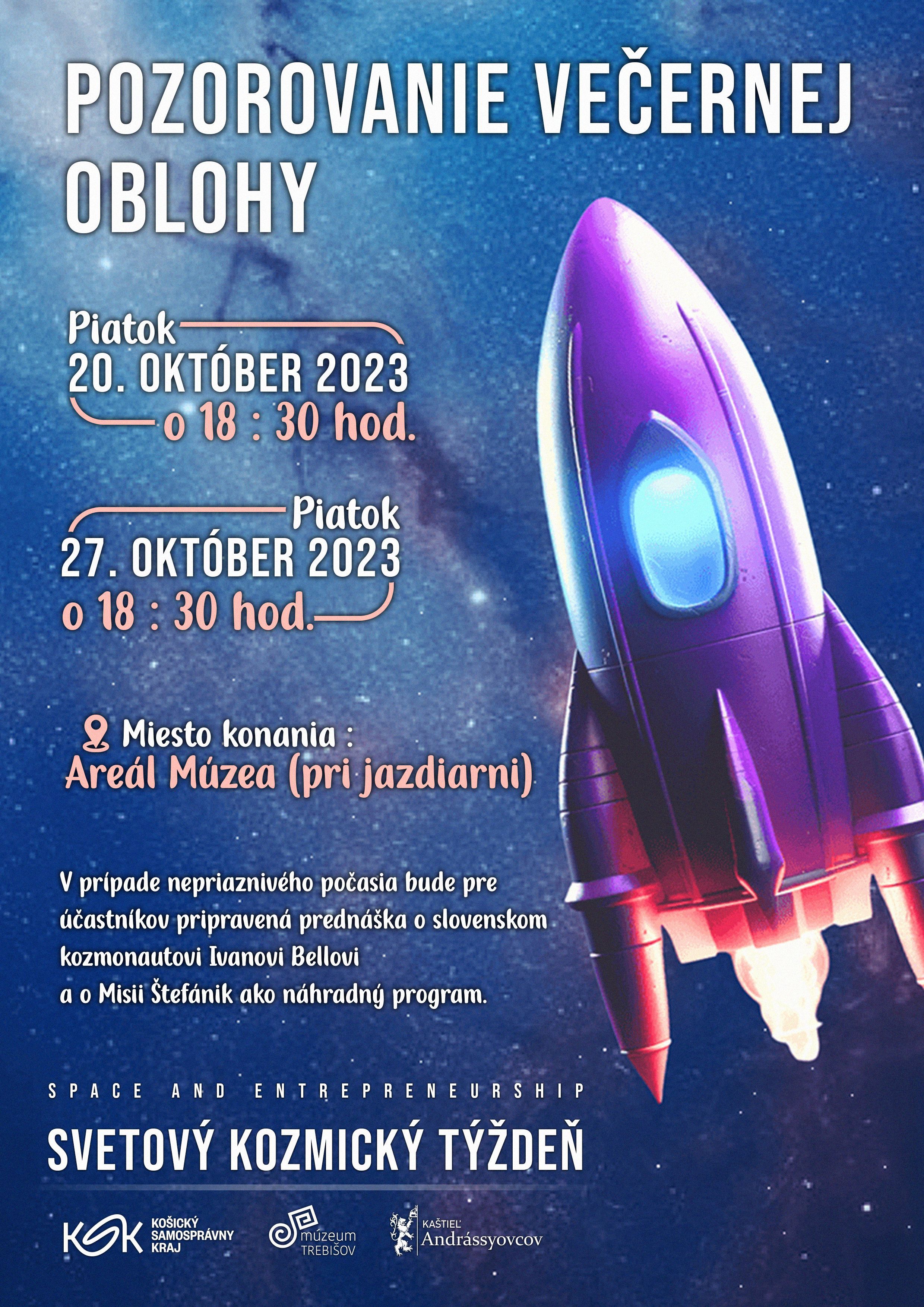Múzeum a Kultúrne centrum južného Zemplína v Trebišove – Útvar astronómie, kultúrne zariadenie Košického samosprávneho kraja, vás pozýva v piatok 20. 10. 2023 o 18:30 hod. na podujatie „Pozorovanie večernej oblohy“, ktoré sa uskutoční v areáli múzea pri jazdiarni.