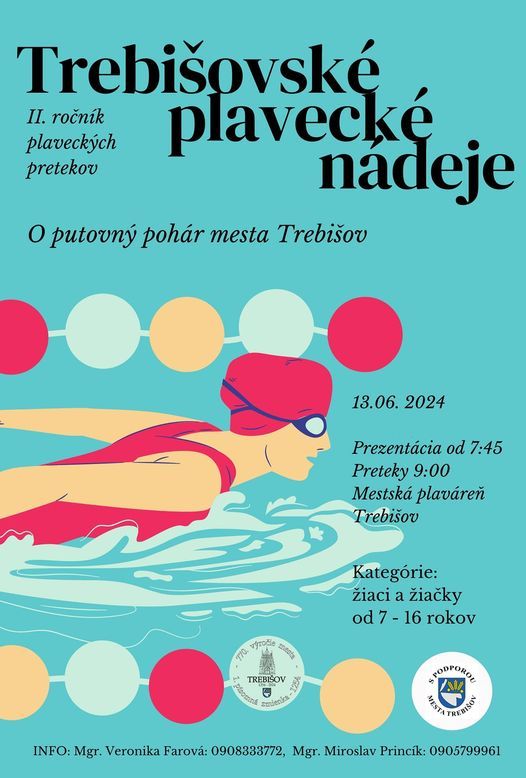 Policajný športový klub plávania a triatlonu a mesto Trebišov vás pozývajú na 2. ročník plaveckých pretekov Trebišovské plavecké nádeje o putovný pohár mesta Trebišov.