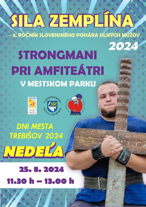 Nedeľu 25.8.2024 sa v čase od 11:30 do 13:00 h predstavia strongmani pri amfiteátri v Mestskom parku.