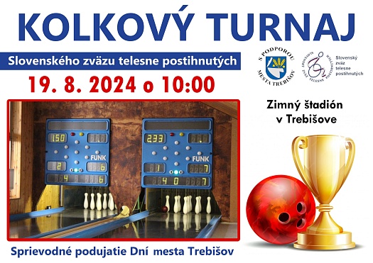 Pondelok 19.8. 2024 o 10:00 h sa na Zimnom štadióne uskutoční Kolkový turnaj Slovenského zväzu telesne postihnutých.