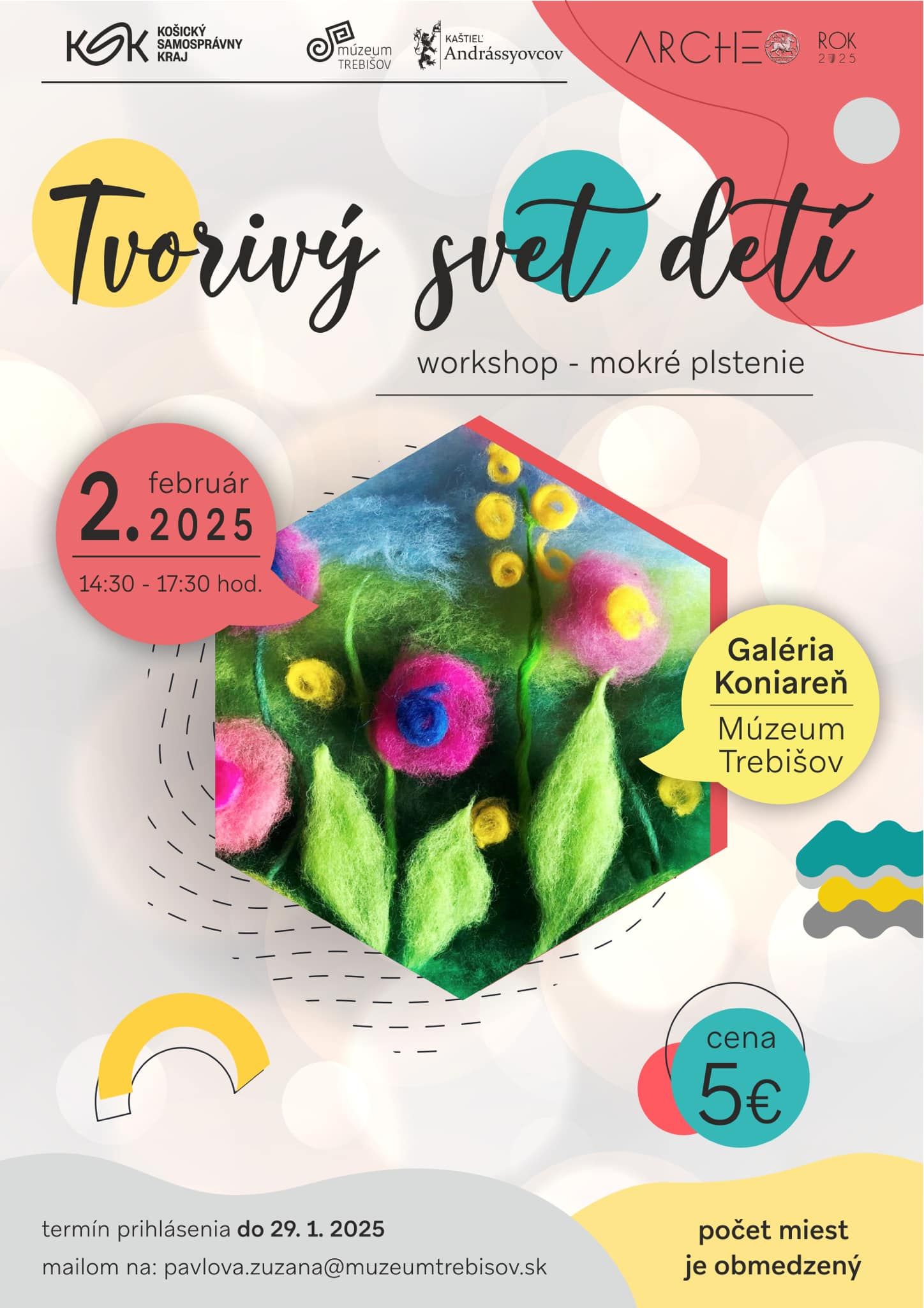 Nezabúdajme na zábavu a tvorivosť! Pozývame všetky deti na workshop 2. februára 2025 v čase od 14:30 do 17:30 do galérie Koniareň v Trebišove.