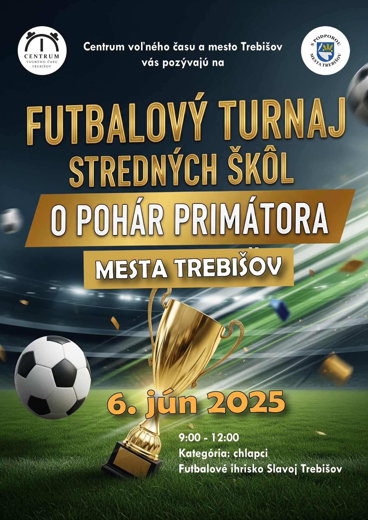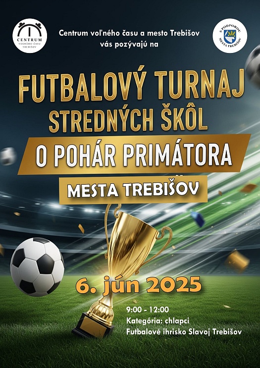 Centrum voľného času Trebišov a mesto Trebišov vás pozývajú na futbalový turnaj žiakov SŠ.