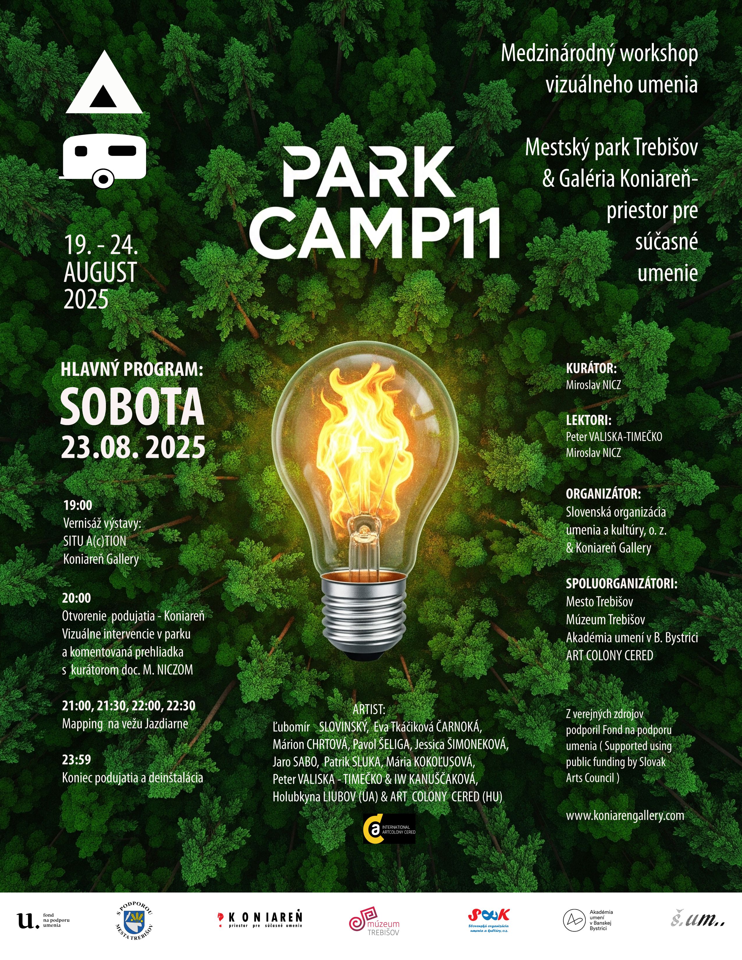 20:00: Otvorenie podujatia - Koniareň, Vizuálne intervencie v parku a komentovaná prehliadka s kurátorom doc. MIROSLAVOM NICZOM