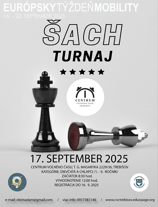 Pozývame všetkých mladých šachistov na šachový turnaj, ktorý sa uskutoční v rámci Európskeho týždňa mobility.