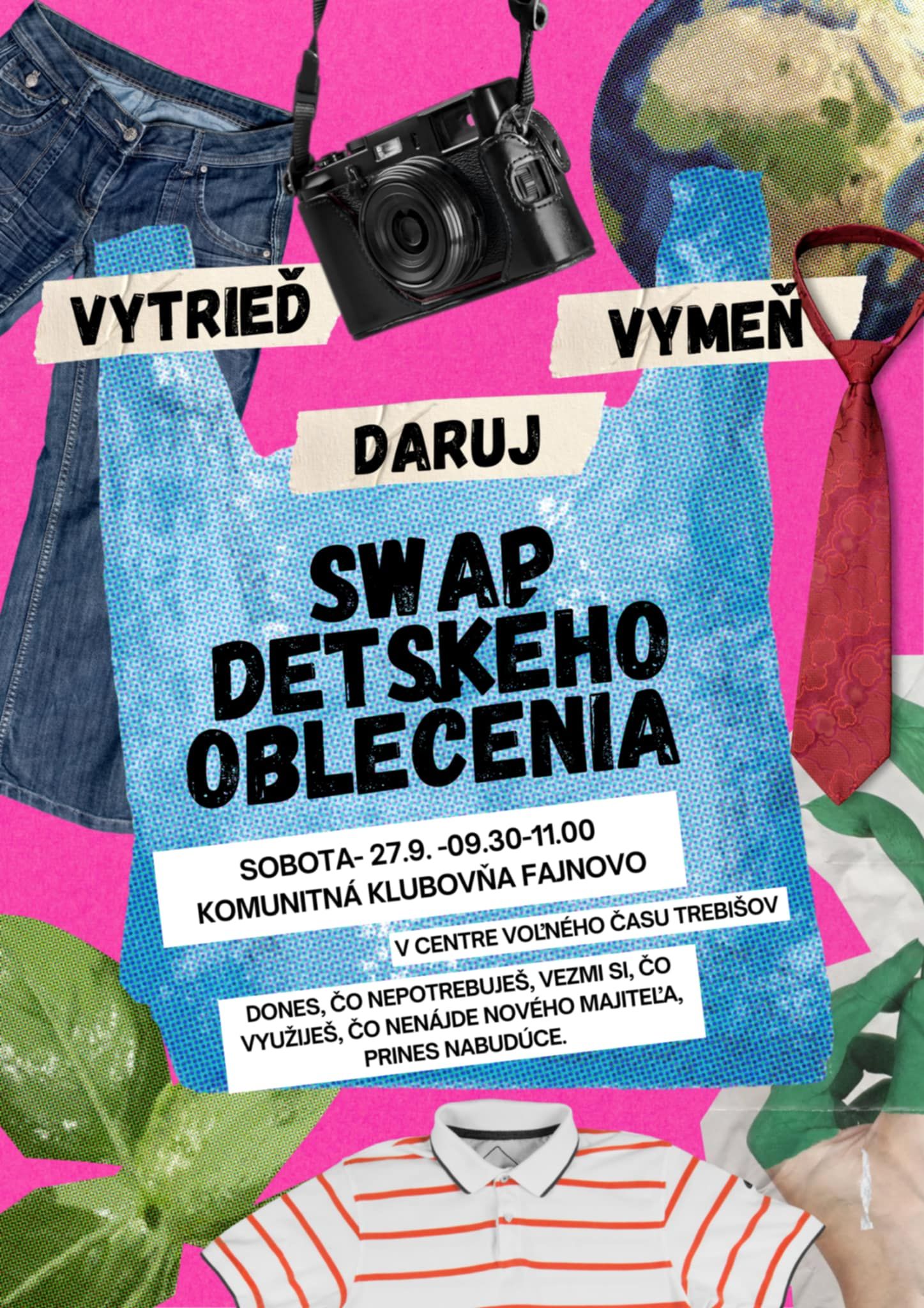 Pozývame vás na komunitné podujatie zamerané na výmenu detského oblečenia, ktoré sa uskutoční v priestoroch Komunitnej klubovne Fajnovo.