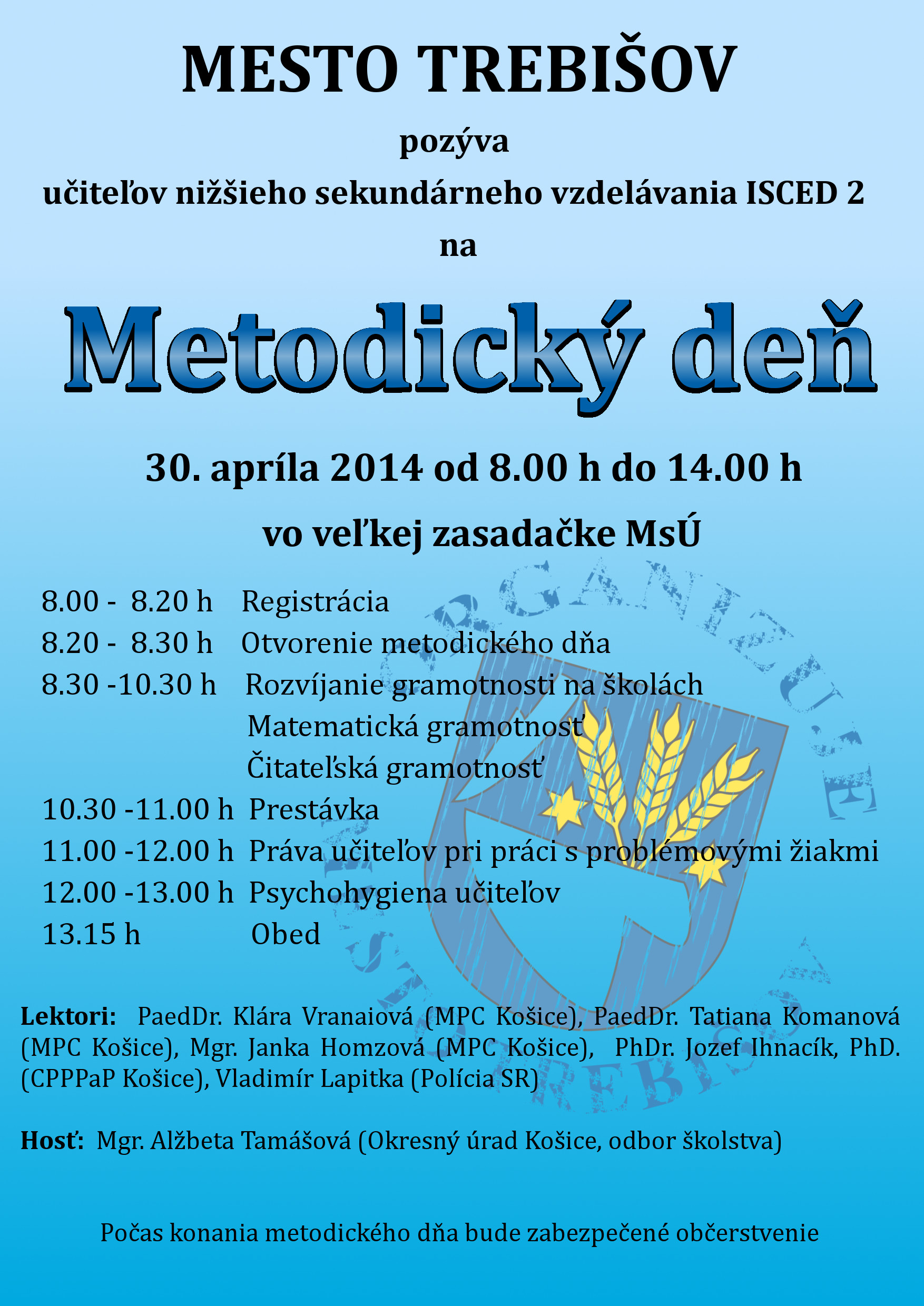 30. apríla 2014 od 8.00 h do 14.00 h vo veľkej zasadačke MsÚ v Trebišove
