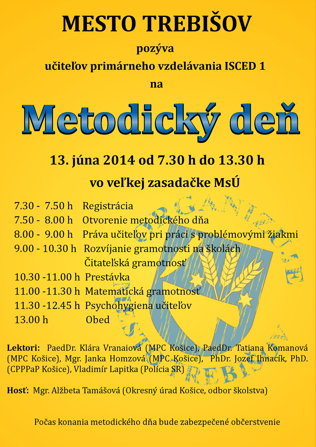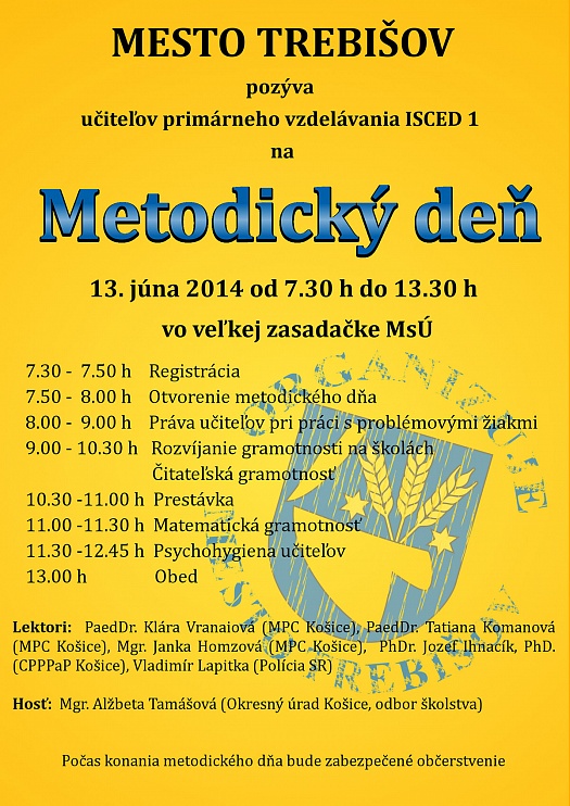 13. júna 2014 od 7.30 h do 13.30 h vo veľkej zasadačke MsÚ v Trebišove