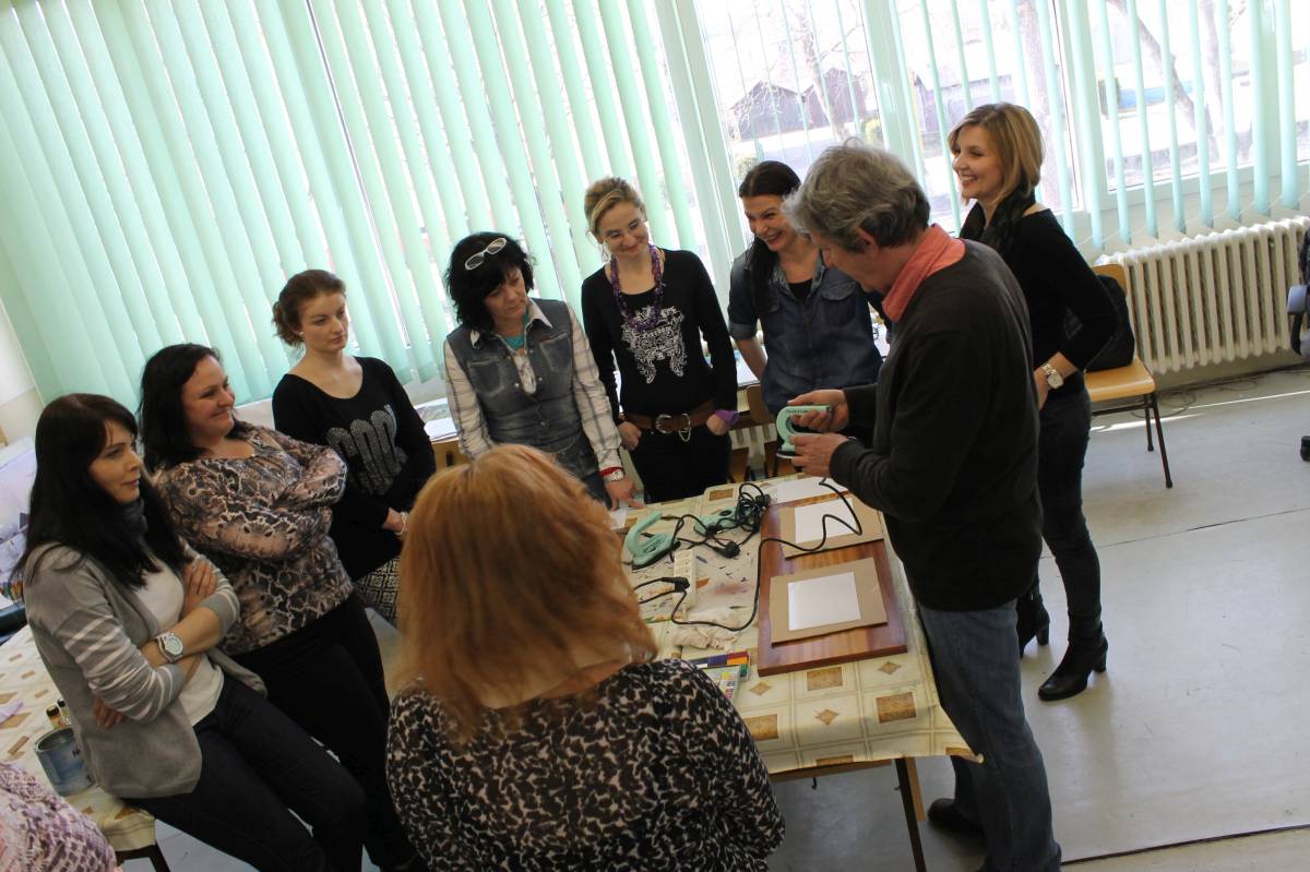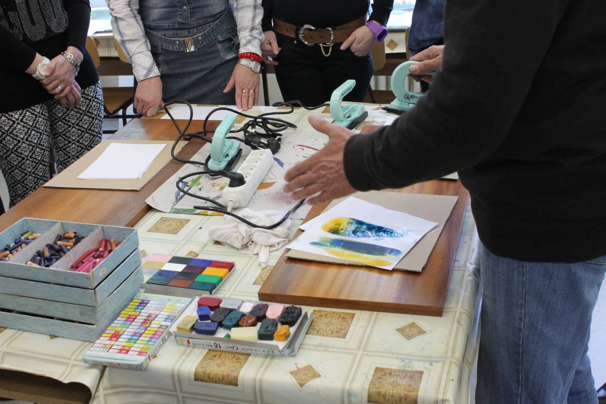 V praktickej časti pracovali učitelia samostatne po názornej ukážke školiteľa Mgr. Jána Pekarčíka. Vyskúšali si techniku mramorovania maľbou veľkonočných kraslíc. Následne zrealizovali maľbu žehličkou – enkaustika. Nadobudli zručnosť v nanášaní farieb na enkaustický výkres, a to: nanášanie hladké bez prerušovania a s prerušovaním, vlnkovanie, tupovanie pravidelné a nepravidelné. Nakoniec si každý účastník vytvoril vlastnú maľbu enkaustikou.