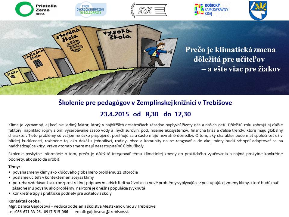 Školenie poskytne informácie o tom, prečo je dôležité integrovať tému klimatickej zmeny do praktického vyučovania a najmä poskytne konkrétne podnety, ako sa to dá urobiť.