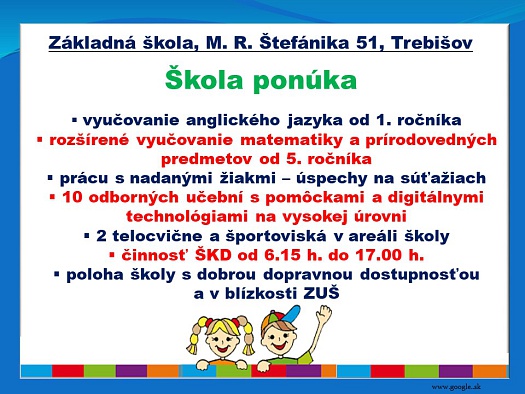 Zápis do 1. ročníka ZŠ M. R. Štefánika, Trebišov